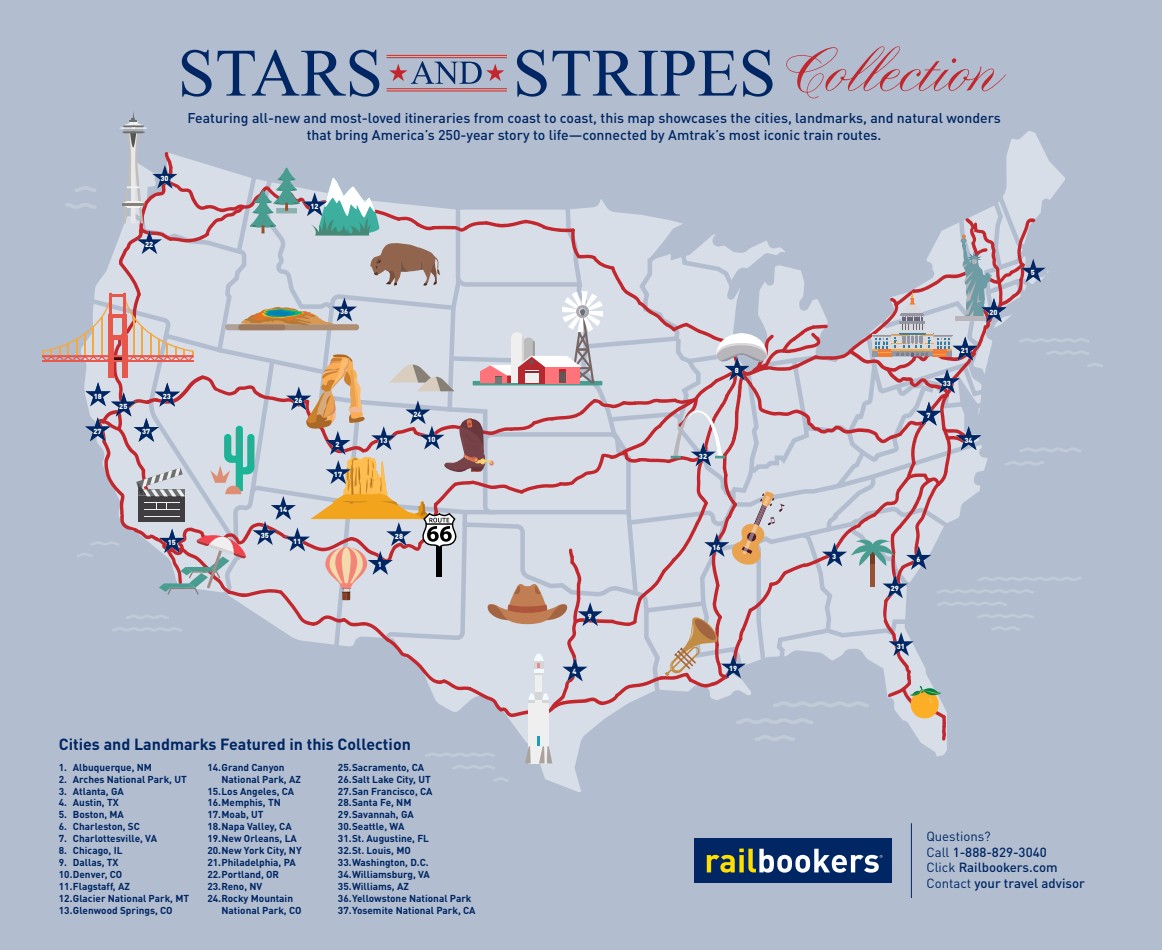 See America’s most extraordinary landmarks and landscapes come alive from the comfort of the rails. Coast to coast, the adventure is pure Stars & Stripes.